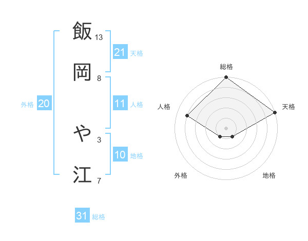 飯岡 や江さんを姓名の画数から五運を鑑定