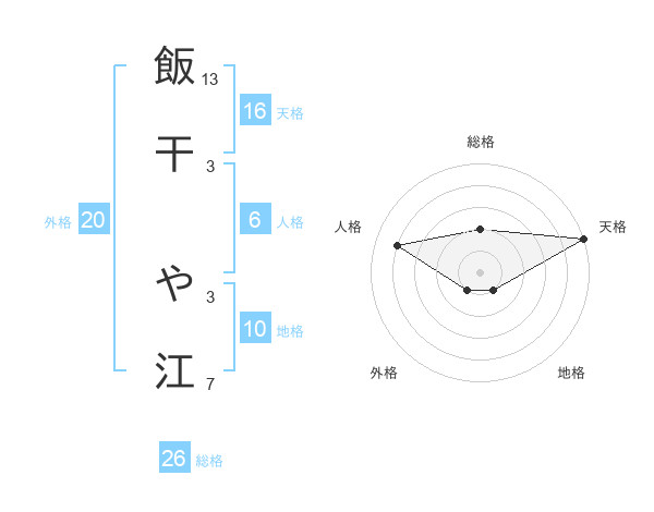 飯干 や江さんの総格は26画の2点!