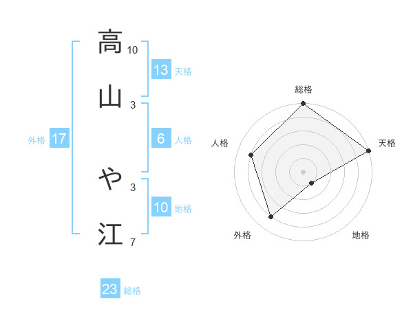 高山 や江さんの天格は13画の5点!