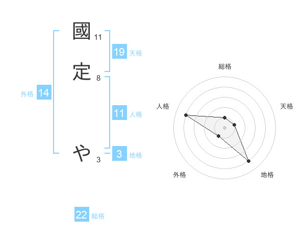 國定 やさんの総格は22画の1点!