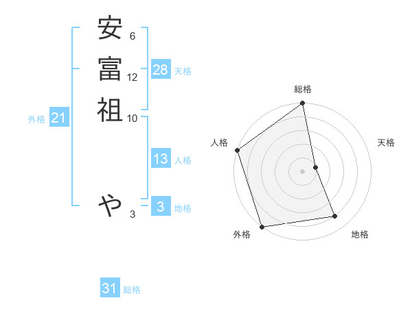 安富祖 やさんの総格は31画の5点!