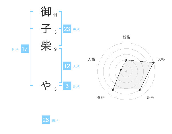 御子柴 やさんの天格は23画の5点!