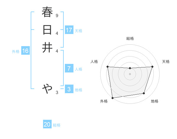 春日井 やさんの総格は20画の1点!
