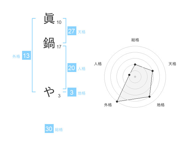 眞鍋 やさんを姓名の画数から五運を鑑定