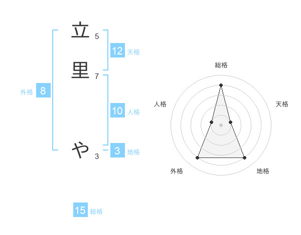立里 やさんの総格は15画の4点!
