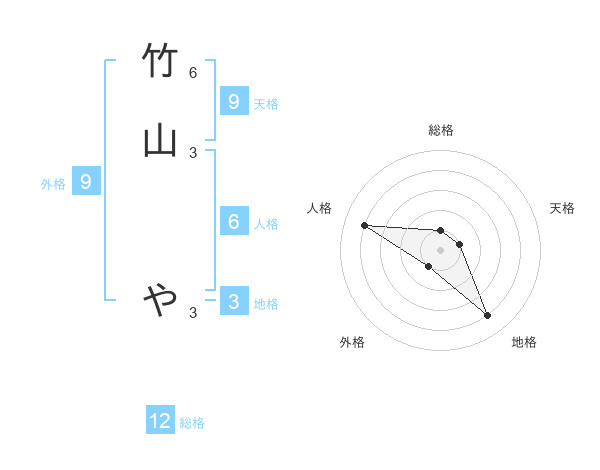 竹山 やさんの総格は12画の1点!
