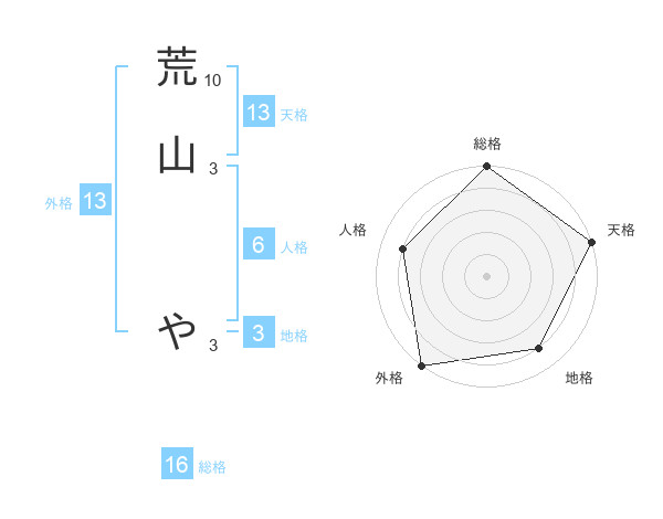荒山 やさんの天格は13画の5点!