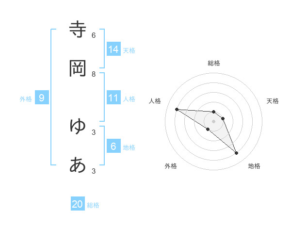 寺岡 ゆあさんを姓名の画数から五運を鑑定