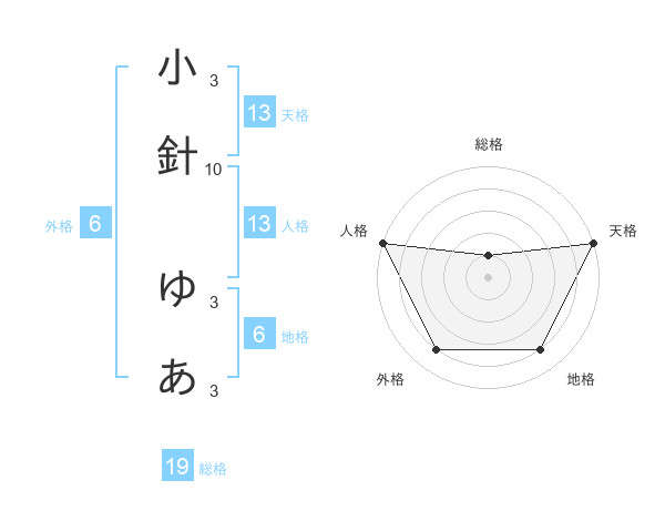 小針 ゆあさんを姓名の画数から五運を鑑定