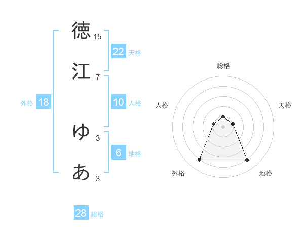 徳江 ゆあさんの外格は18画の4点!