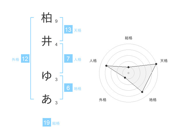 柏井 ゆあさんの天格は13画の5点!