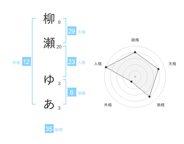 柳瀬 ゆあさんを姓名の画数から五運を鑑定