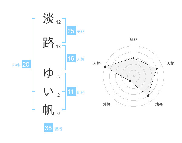 淡路 ゆい帆さんを姓名の画数から五運を鑑定