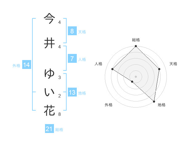 今井 ゆい花さんを姓名の画数から五運を鑑定