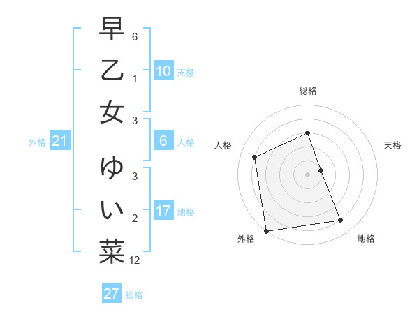 早乙女 ゆい菜さんを姓名の画数から五運を鑑定