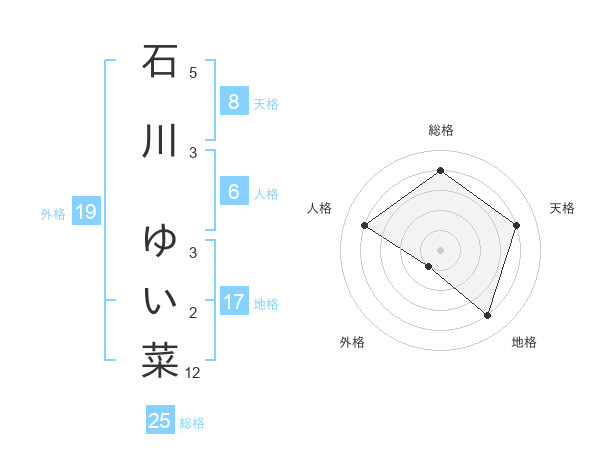 石川 ゆい菜さんを姓名の画数から五運を鑑定
