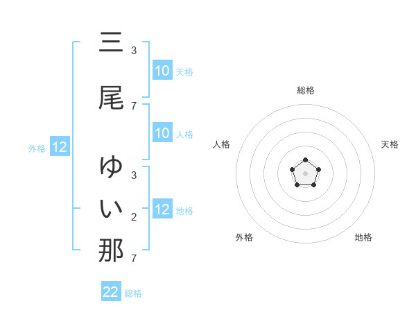 三尾 ゆい那さんを姓名の画数から五運を鑑定