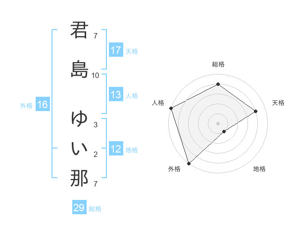 君島 ゆい那さんを姓名の画数から五運を鑑定