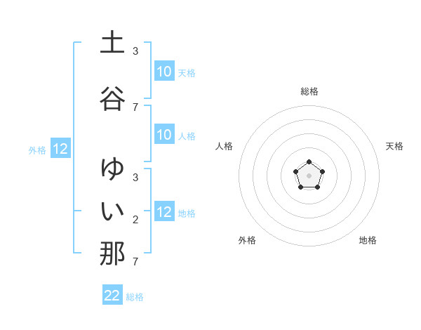 土谷 ゆい那さんの総格は22画の1点!