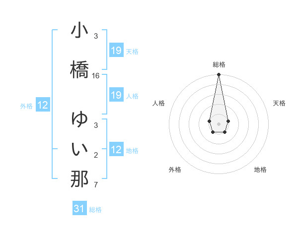 小橋 ゆい那さんを姓名の画数から五運を鑑定