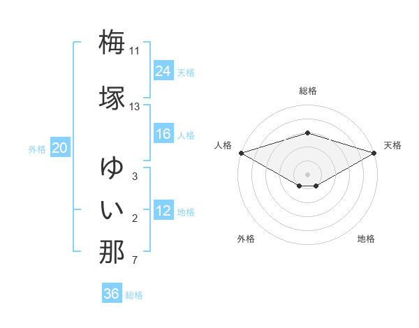 梅塚 ゆい那さんを姓名の画数から五運を鑑定