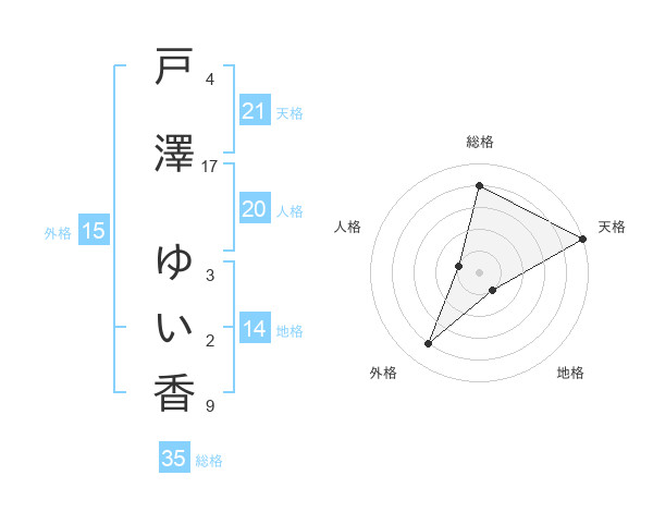 戸澤 ゆい香さんを姓名の画数から五運を鑑定