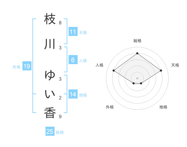 枝川 ゆい香さんの総格は25画の4点!