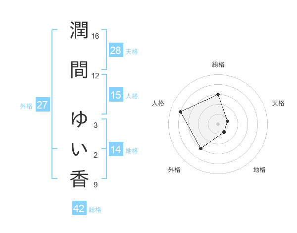潤間 ゆい香さんの総格は42画の3点!
