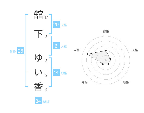舘下 ゆい香さんの総格は34画の2点!