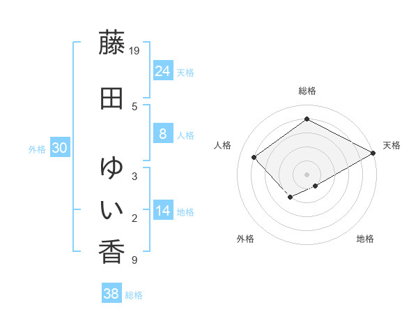 藤田 ゆい香さんを姓名の画数から五運を鑑定