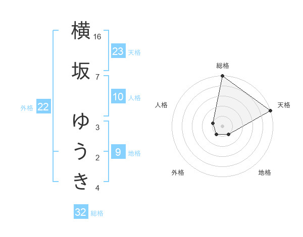 横坂 ゆうきさんの総格は32画の5点!