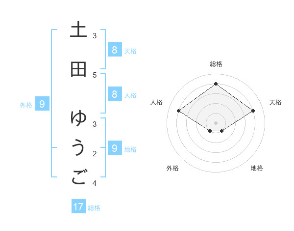 土田 ゆうごさんを姓名の画数から五運を鑑定