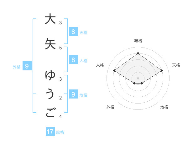 大矢 ゆうごさんの天格は8画の4点!