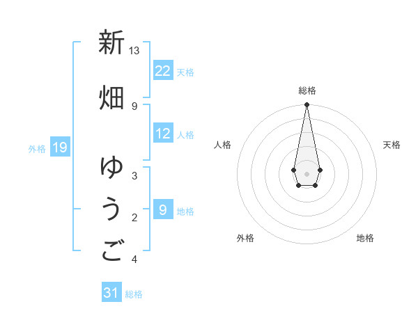 新畑 ゆうごさんを姓名の画数から五運を鑑定