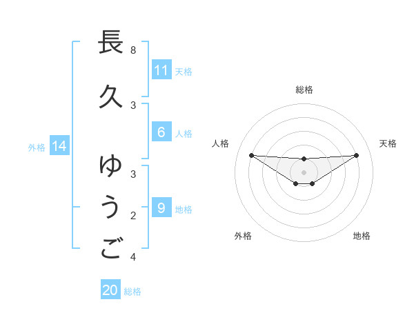 長久 ゆうごさんを姓名の画数から五運を鑑定