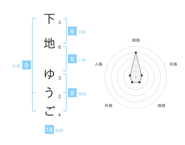 下地 ゆうごさんを姓名の画数から五運を鑑定