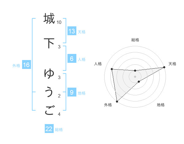 城下 ゆうごさんを姓名の画数から五運を鑑定