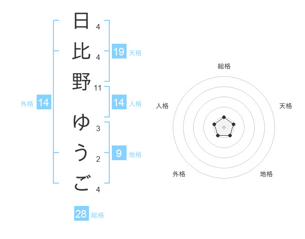 日比野 ゆうごさんを姓名の画数から五運を鑑定