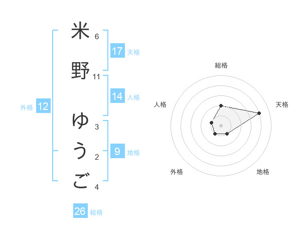 米野 ゆうごさんを姓名の画数から五運を鑑定
