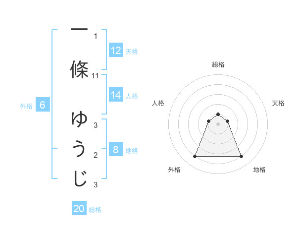 一條 ゆうじさんを姓名の画数から五運を鑑定