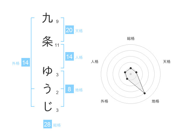 九条 ゆうじさんの天格は20画の1点!