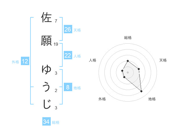 佐願 ゆうじさんを姓名の画数から五運を鑑定