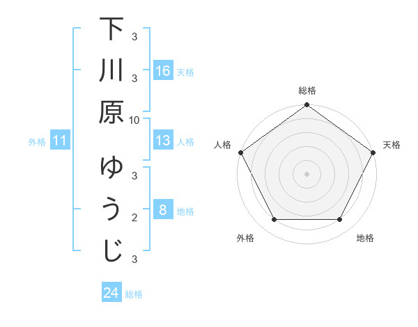 下川原 ゆうじさんを姓名の画数から五運を鑑定
