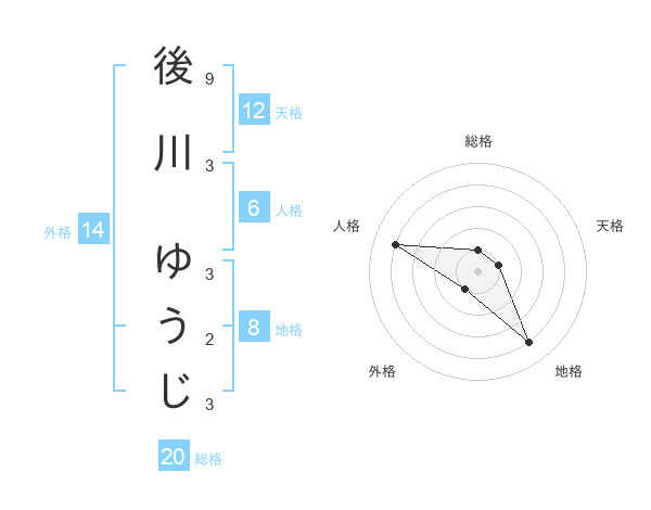 後川 ゆうじさんの総格は20画の1点!
