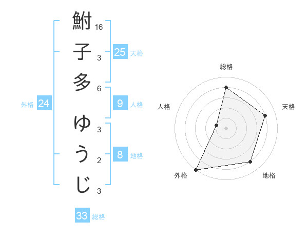 鮒子多 ゆうじさんの総格は33画の4点!