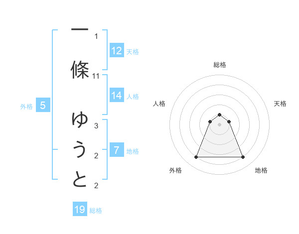 一條 ゆうとさんを姓名の画数から五運を鑑定