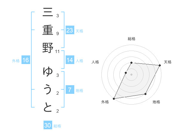 三重野 ゆうとさんを姓名の画数から五運を鑑定