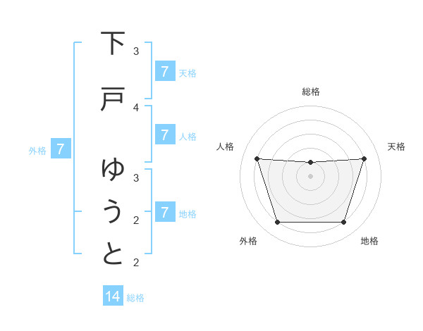下戸 ゆうとさんの天格は7画の4点!