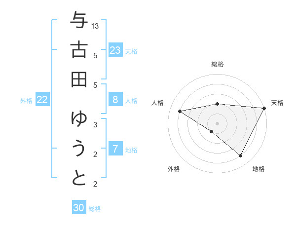 与古田 ゆうとさんを姓名の画数から五運を鑑定
