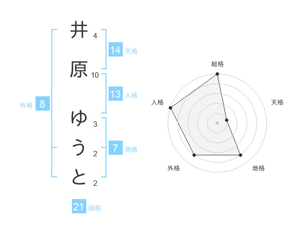 井原 ゆうとさんを姓名の画数から五運を鑑定